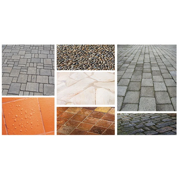 - Dallages et sols extérieurs : pavés autobloquants, pierres naturelles ou reconstituées, bétons bruts ou teintés, terres cuites, tomettes, etc…