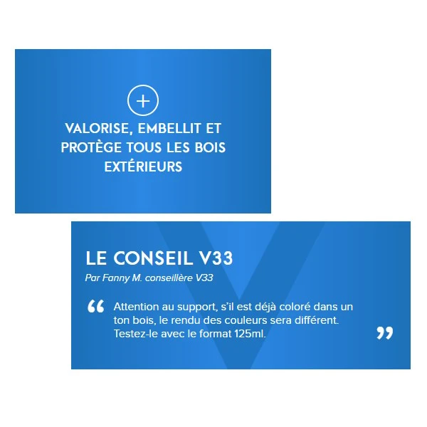 | Conditionnement | 1 pot de lasure bois intérieur extérieur V33 |