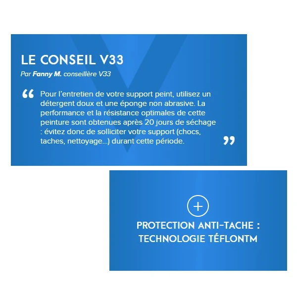 Depuis 1957, la marque V33 fabrique dans le Jura ses peintures pour sublimer vos intérieurs du sol au plafond ! Elle offre des formulations étudiées pour répondre à toutes les contraintes du quotidien dans la cuisine. Vous obtenez ainsi des finitions parfaites, pour durer et résister aux agressions quotidiennes en cuisine.