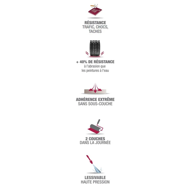 Avec la peinture V33 « Trafic extrême » pour sols de garage et sous-sols, vous obtenez un niveau de protection maximal contre les chocs, tâches et une résistance élevée au passage de pneus chauds.